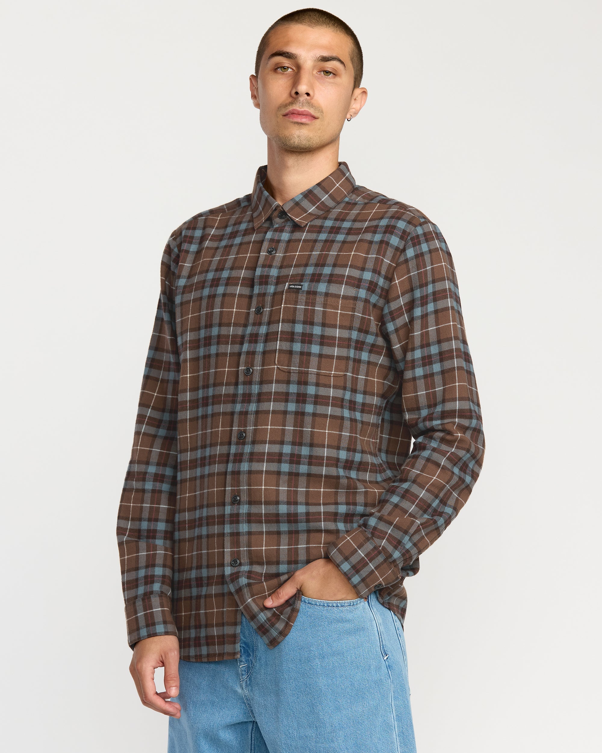 Who said a plaid can’t go hard? The Caden Plaid LS shows up with 100% cotton comfort. a classic fit that rides clean. and details that hit: Stone embroidery. custom logo buttons. and a left chest pocket. In Brown Stone. it handles coffee runs. curb sessions. and late nights without blinking.