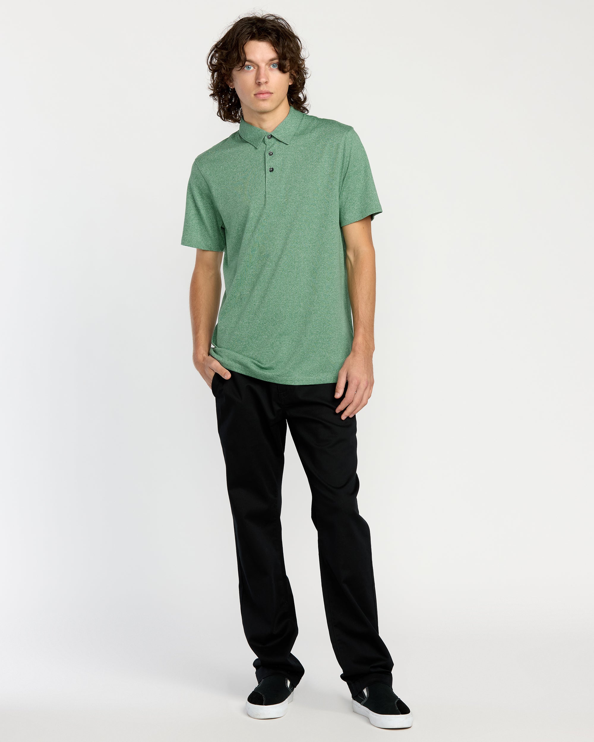 Streamlined polo crafted from a soft cotton-poly blend. with custom logo buttons and subtle embroidered branding. Modern cut flatters while providing casual yet athletic versatility.
